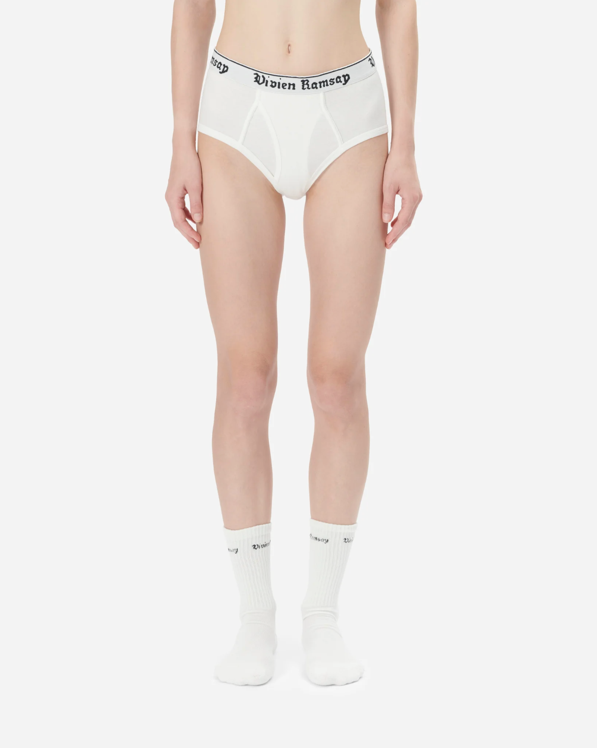The original Vivien Ramsay Boy Brief, crafted from premium recycled and organic cotton with a classic 1x1 rib texture. Experience lasting comfort with snug elastic leg openings, ensuring all-day comfort, wear after wear. Our resilient logo repeating elastic waistband and fabric maintain its shape and quality through countless washes. This style is designed to be gender-neutral, making it an inclusive choice for all.