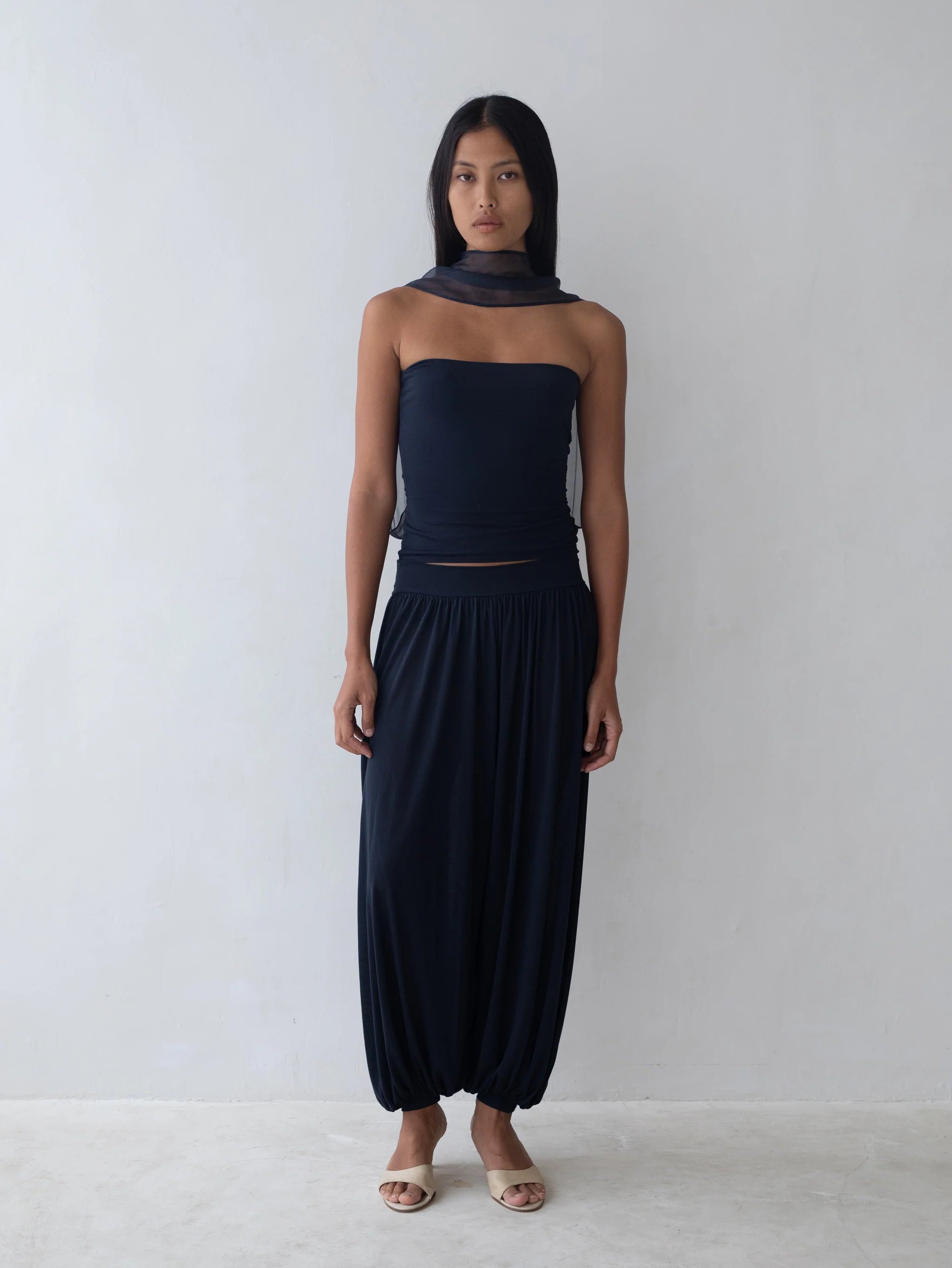 Dry clean recommended to maintain drape and elasticity. For gentle at-home care, hand wash cold with mild detergent. Avoid bleach, soaking, or fabric softeners. Reshape and lay flat to dry—do not wring or tumble dry. Cool iron on reverse side if needed.
