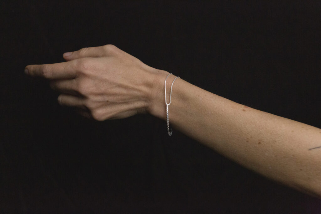 Sleek box chain in two different thicknesses form a delicate bracelet to put some extra shine to your wrist. Made from recycled silver.