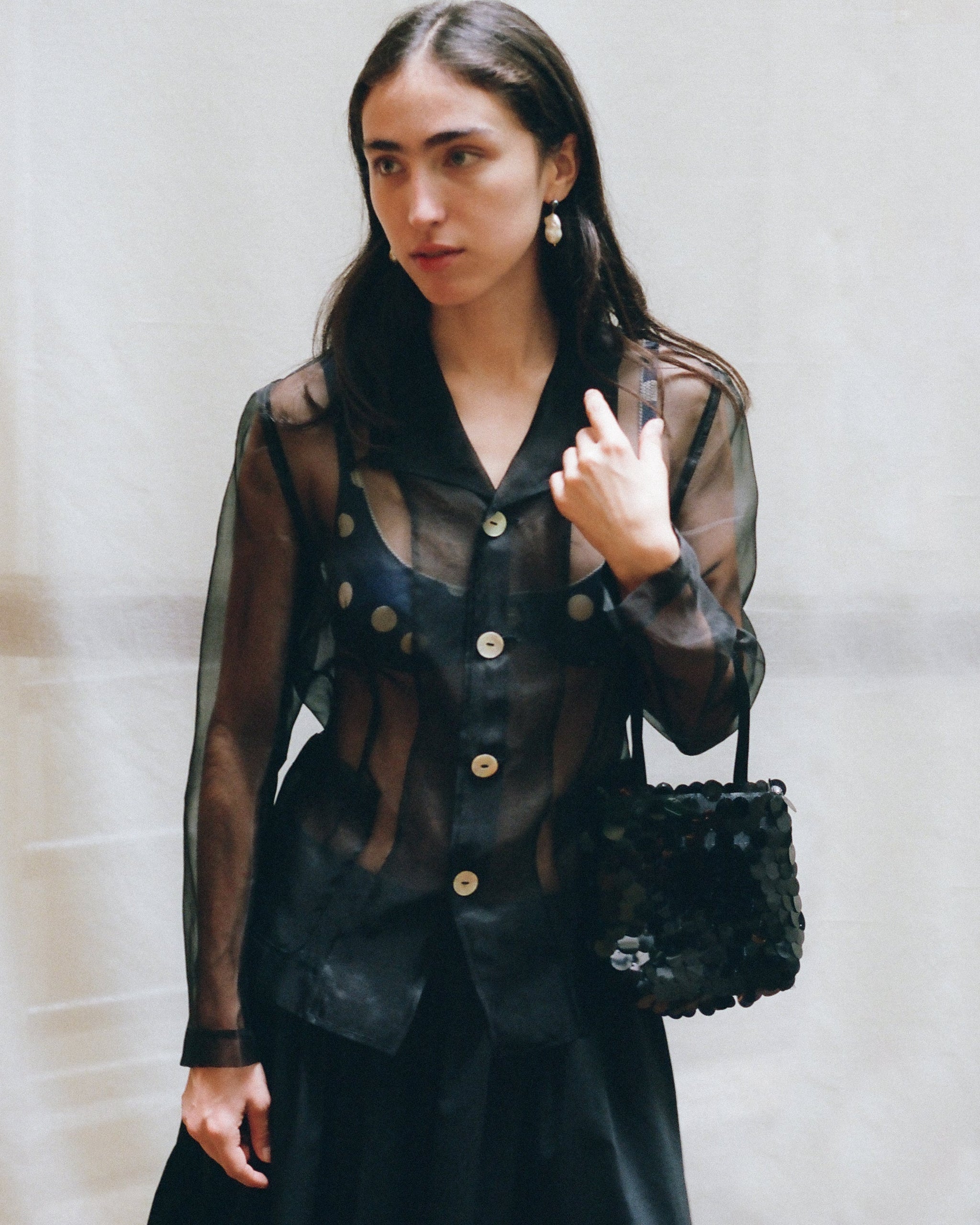 An updated version of our classic little silk bag, the Grace bag is embellished with oversized sequins for a statement finish. Designed to be worn comfortably over the wrist.