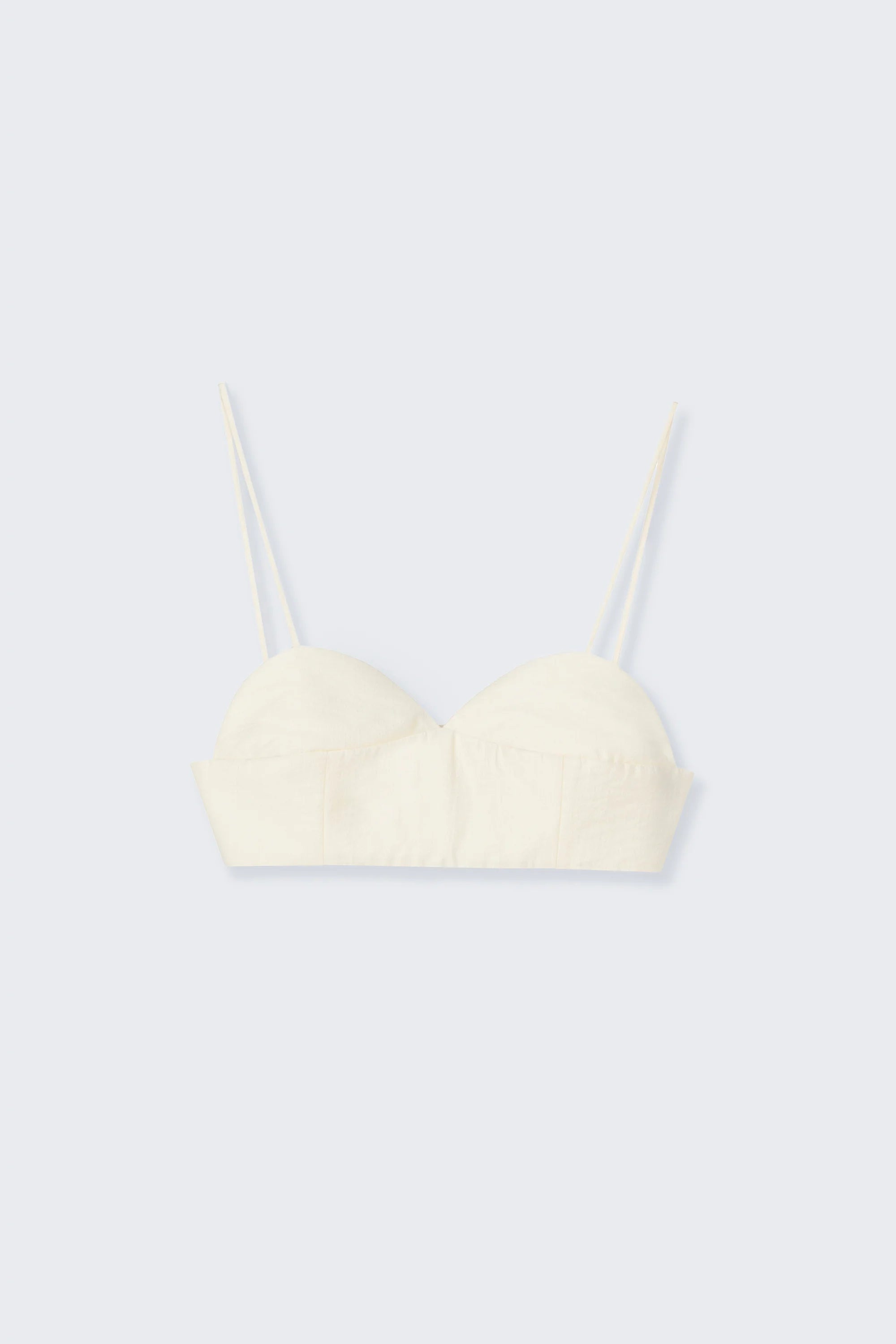 A delicate and feminine piece with a sweetheart neckline and fine spaghetti straps. Designed with an elasticated band at the back for comfort and support, this bralette blends charm and ease in equal measure.