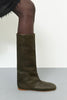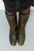 Supple, long, and slim, Severine is a study in simplicity with subtle distinctions. Crafted from khaki leather, her rounded square toe and wider shaft silhouette create a boot with the heart of a riding boot and the sole of a ballerina.