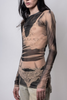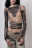 The top is sewn and spraypainted with vintage lingerie in our Paris atelier. This makes each print completely unique.