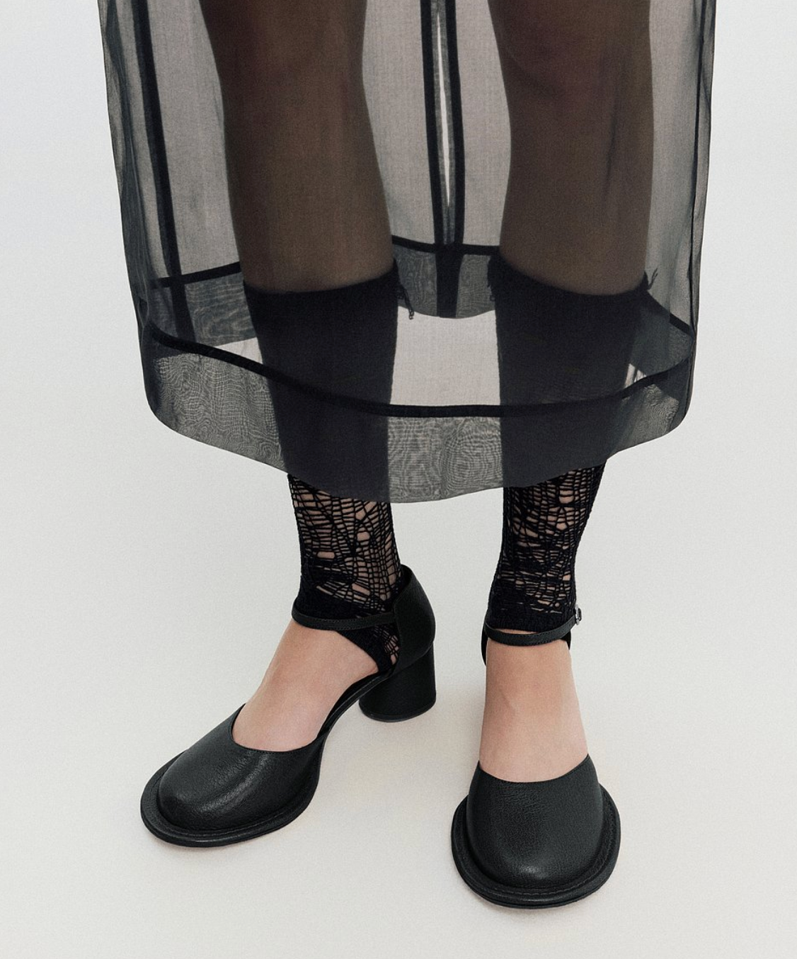 The leather welt, which deliberately enlarges the shape of the sock, creates a unique hemispherical silhouette reminiscent of a halo, an optical phenomenon, a light circle around the Sun or the Moon. The welt part of the Halo has an accent decorative seam, which is extremely complex in execution. And the shoes are complemented by heels of smooth and rounded lines.