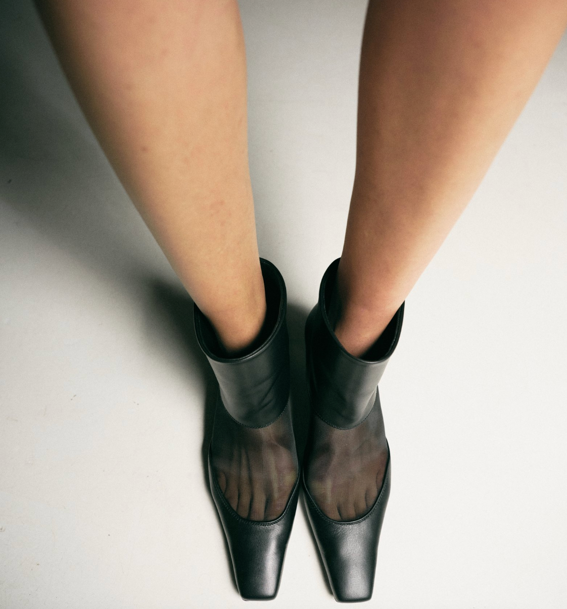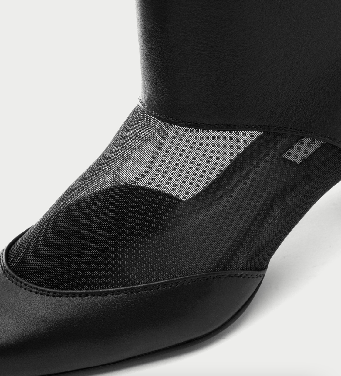 Boots that create the effect of nudity, thanks to the central section that exposes part of the foot. The curvy lines in their design are reminiscent of classic cowboy boots and imitate the curves of the heels.