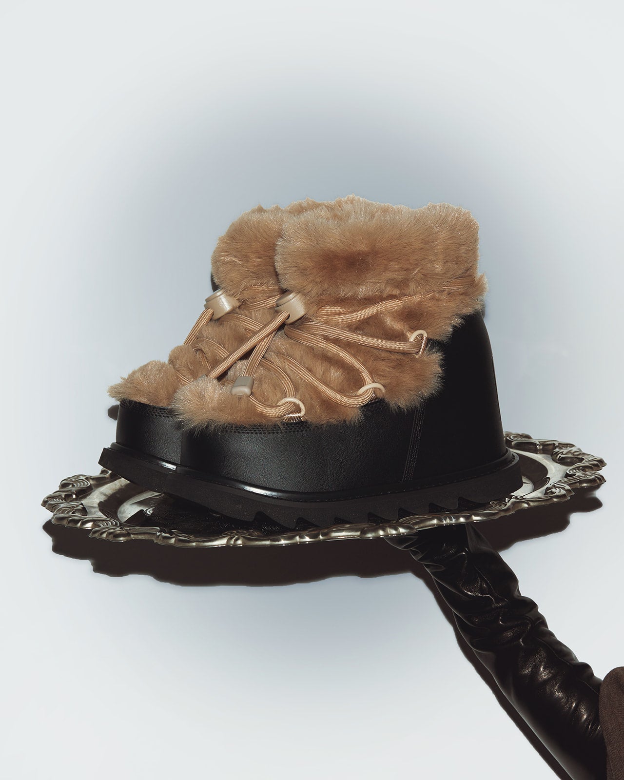 The Zembla Artic Mid is a lace-up winter bootie featuring a faux fur upper, thick knit laces, an oversized rand, and a chunky treaded platform outsole. A hidden 100mm/3.9in wedge adds a subtle lift. Blending clean lines with the technical specs of a snow boot, the Zembla is a playful, versatile style that's equally at home in the city and light outdoor adventures.