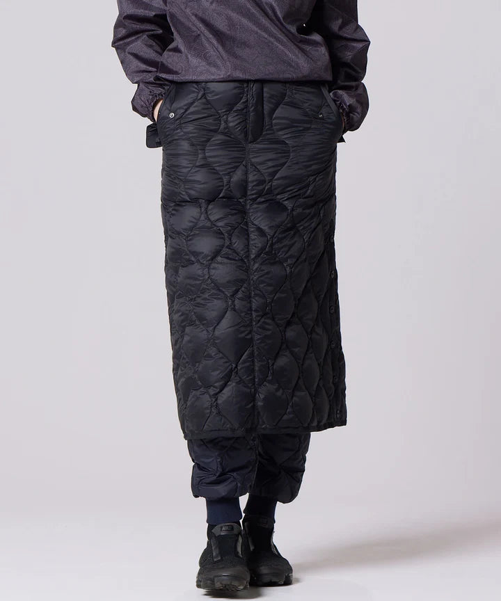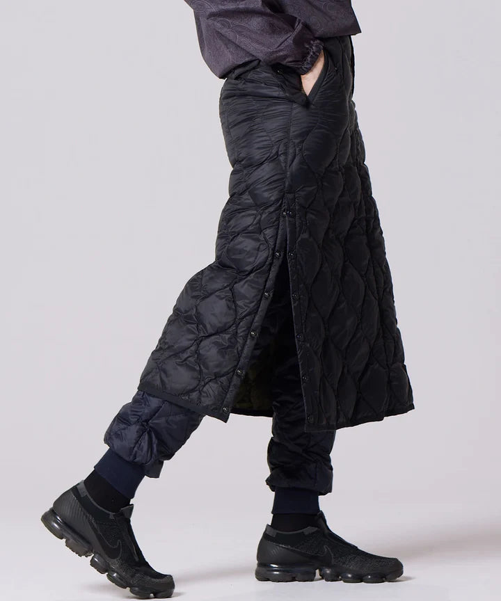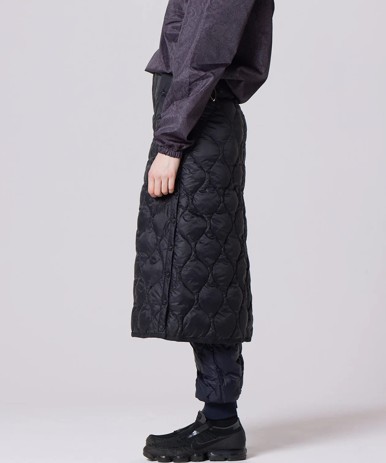 This semi-flared military down long skirt is made with SOFT SHELL fabric, offering a warm and comfortable experience. Side slits that open up to the knee allow for easy movement even with a long skirt. Hand washable at home.