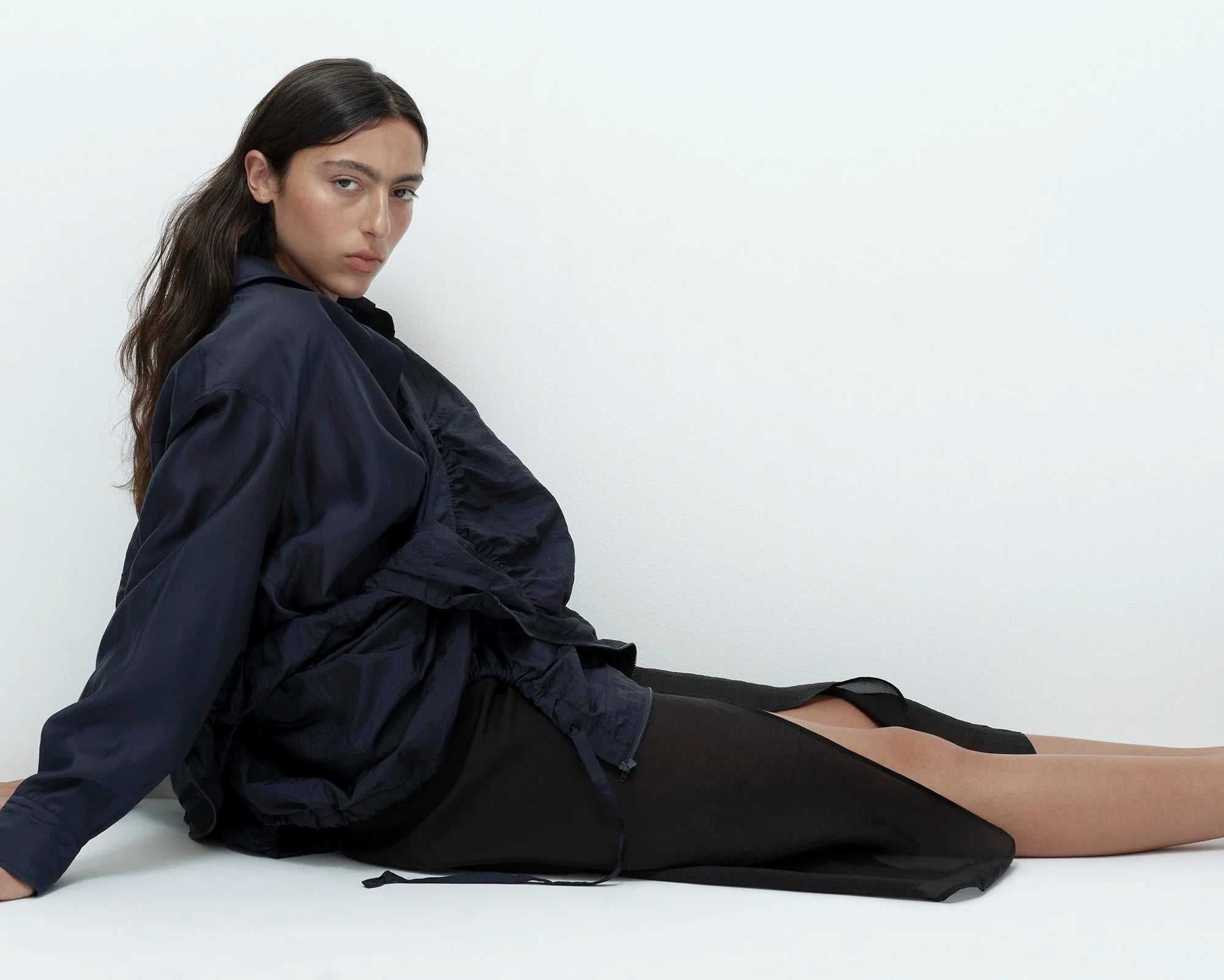 [S] 75% rayon, 25% polyester / [L] 76% nylon, 21% cotton, 3% polyurethane